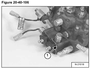 Remove the lift and tilt lock block (Item 1) [Figure 20-40-106] from the control valve. (See Lift And Tilt Lock Block