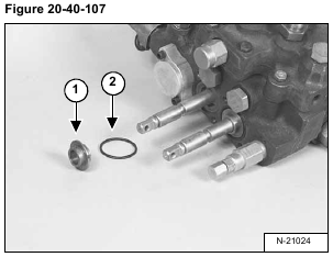 Remove the spacer (Item 1) and O-ring (Item 2) [Figure 20-40-107] from the tilt spool.