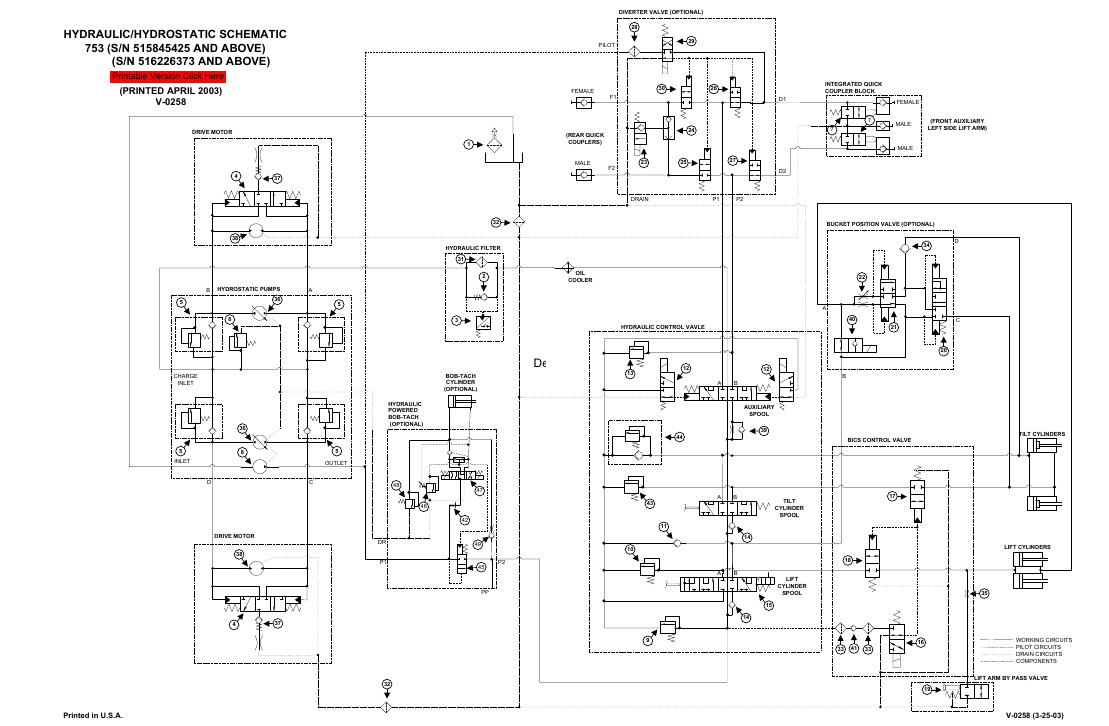BobCat 753 – HYDRAULIC/HYDROSTATIC SCHEMATIC