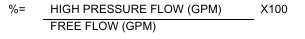 Record the flow (GPM) at system relief pressure. The high pressure flow must be at least 80% of free flow.