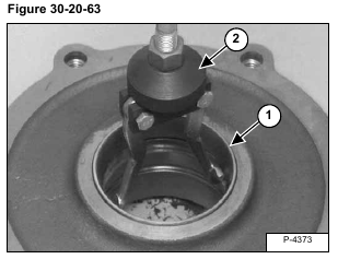Remove the housing from the press and install a bearing puller (Item 1) [Figure 30-20-62] on the sprocket shaft.