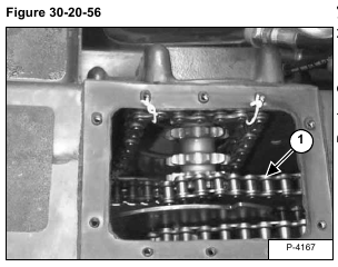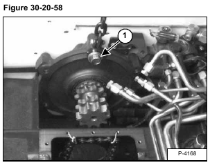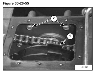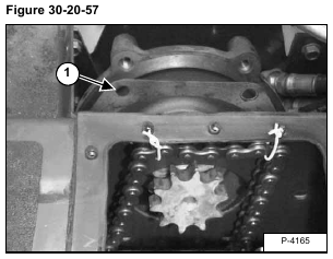Tip the end of the sprocket toward the rear of the loader and remove the rear drive chain (Item 1) [Figure 30-20-56] from the sprocket.