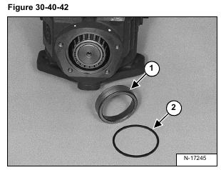 Install the bearing race (Item 1) and O-ring (Item 2) [Figure 30-40-42] at the lower trunnion as shown in