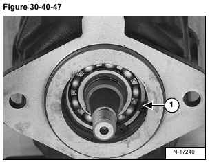 Install the bearing and snap ring (Item 1) [Figure 30-40-46] on the pump shaft.