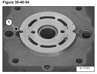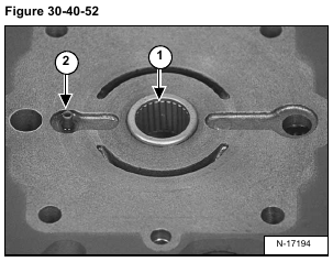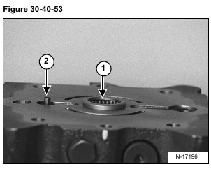 Replace the needle bearing (Item 1) and valve plate locating pin (Item 2) [Figure 30-40-52] in the pump.