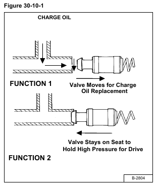 2. To keep high pressure fluid out of the low pressure side of the hydrostatic circuitry; Function 2 [Figure 30-10-1].
