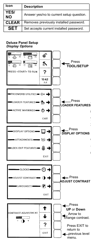 BobCat 753 – INSTRUMENT PANEL – Right Panel Setup Display Options (Deluxe)