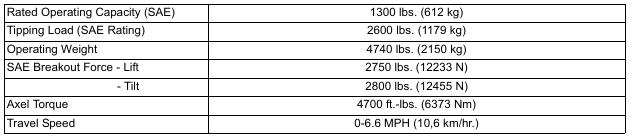 BobCat 753 – LOADER SPECIFICATIONS (753) – Performance