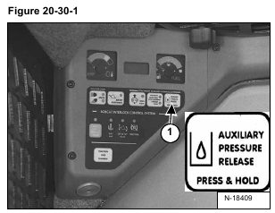 • Press the AUXILIARY PRESSURE RELEASE Button (Item 1) [Figure 20-30-1]. Hold it for two seconds.