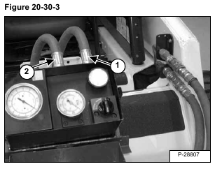 Connect the OUT port (Item 2) [Figure 20-30-3] of the hydraulic tester to the top (male) quick coupler on the