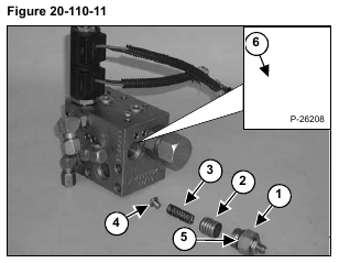 Remove the relief piston (Item 2), spring (Item 3), ball seat spring guide (Item 4) [Figure 20-110-11].