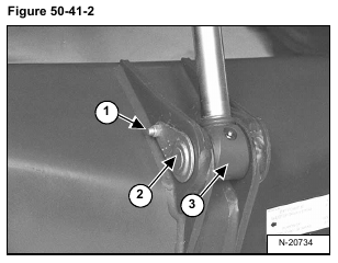 Remove the retainer bolt (Item 1) [Figure 50-41-2] and nut from the tilt cylinder rod end pin.