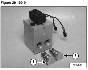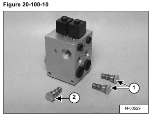 Remove the logic cartridge valves from block ports LC1 and LC2 (Item 1) [Figure 20-100-9].