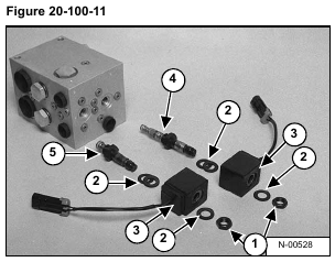 Remove the nuts (Item 1), seal washers (Item 2), and solenoid valve coils (Item 3) [Figure 20-100-11].