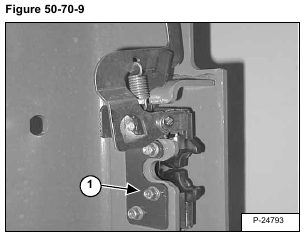 Remove the door latch mounting bolts (Item 1) [Figure 50-70-9] from the door latch mechanism.