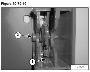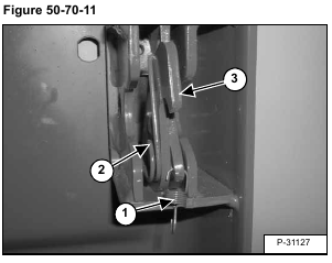 Remove the bolt and nut (Item 2) [Figure 50-70-10] from the latch.
