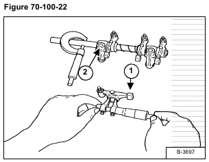 Measure the rocker arm I.D. (Item 1) [Figure 70-100-22] with the inside micrometer.