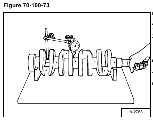 Put the crankshaft on V-blocks. Install a dial indicator on the center journal [Figure 70-100-73].