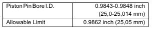 Calculate the oil clearance. If the clearance exceeds the allowable limit, replace the bushing. If it still exceeds the specifications, replace the piston pin.