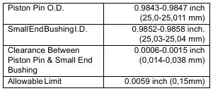 Installation: Clean the small end bushing and bore. Put oil on the bushing and press into the connecting rod until