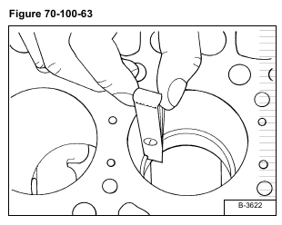 Install new piston ring into the lower part of the cylinder bore. Measure the ring gap with a feeler gauge [Figure 70-100-63].