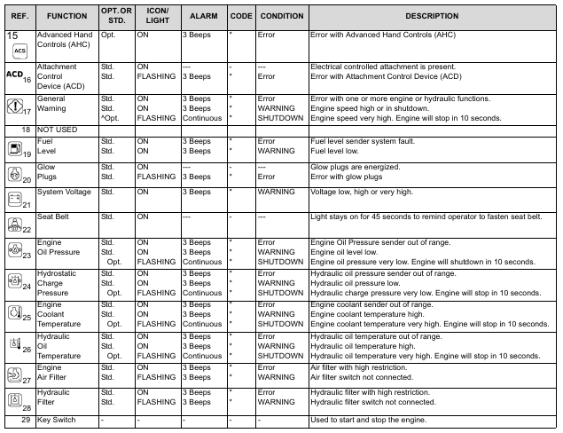 ? SHUTDOWN feature only in Deluxe Right Panel or Factory Option with Standard Panel. (Engine can be restarted to move or relocate loader.)