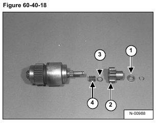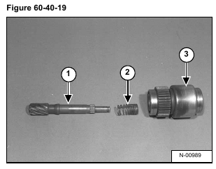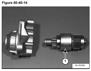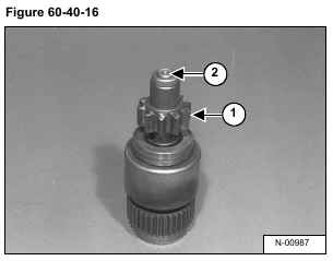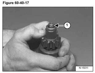 Remove the pinion shaft (Item 1) and spring (Item 2) from the over running clutch (Item 3) [Figure 60-40-19].