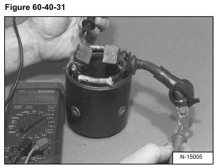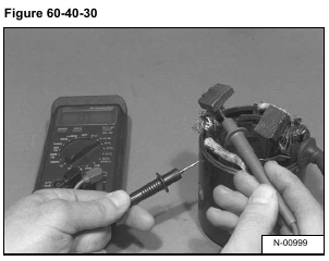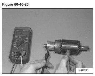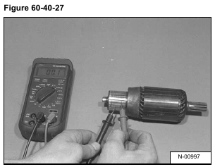 Armature Winding Continuity Test: Use a circuit tester, touch the probes to two commutator segments [Figure 60-40-27]. There should be continuity at any point. If there is no continuity, the winding is open-circuited, replace the armature.