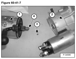 NOTE: When separating the parts there will be a steel ball (Item 3) located at the end of the armature shaft (Item 4) [Figure 60-41-7].