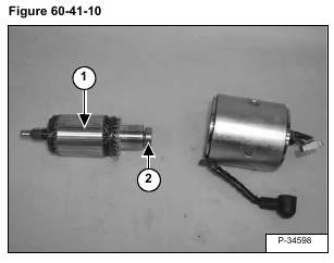Remove the armature, yoke, brush holder and rear bracket assemblies (Item 1) from the front assembly (Item 2) [Figure 60-41-7].