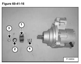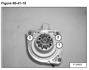 Remove the retainer (Item 2) [Figure 60-41-15] & [Figure 60-41-16] and pinion (Item 1) [Figure 60-41-15] & [Figure 60-41-16].