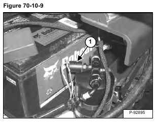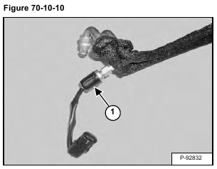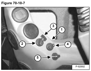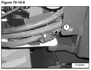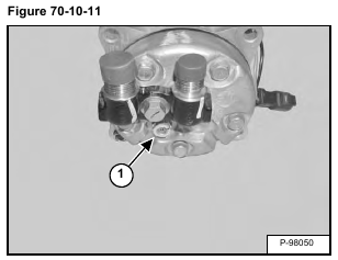 High Pressure Switch: The high pressure switch (Item 1) [Figure 70-10-9] will disengage the compressor clutch at high pressure readings over 2689 – 2827 kPa (26,9 – 28,3 bar) (390 – 410 psi) on the high side. The clutch will engage when the pressure is at 2103 – 2379 kPa (21 – 23,8 bar) (305 – 345 psi).