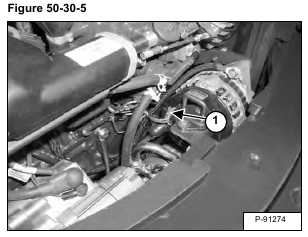 Turn the engine OFF and remove the L & S Terminal connector (Item 1) [Figure 50-30-5] from the alternator.