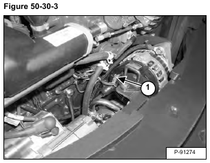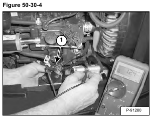 Turn engine OFF and remove the L & S terminal connector (Item 1) [Figure 50-30-3] from the alternator.