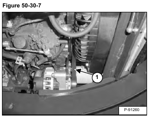 Remove the belt (Item 1) [Figure 50-30-7] from the engine. (See Belt Replacement on Page 50-30-1.)