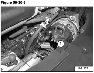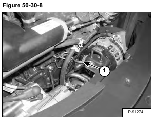 Disconnect the wire harness (Item 1) [Figure 50-30-8] from the alternator.