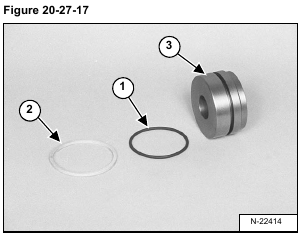 Install the O-ring (Item 1) and seal (Item 2) on the piston (Item 3) [Figure 20-27-17].
