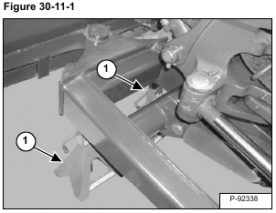 Raise the blade fully and install jack stands (Item 1) [Figure 30-11-1] under the blade arms.
