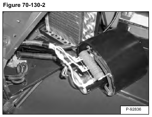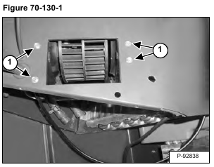Posted on October 8, 2023 by Jack BobCat E35 – BLOWER FAN – Removal And Installation Remove the heater coil. (See Removal And Installation on Page 70-120-1.) Remove the four bolts (Item 1) [Figure 70-130-1]. Mark and remove the wire connectors from the motor [Figure 70-130-2]. Remove the motor.