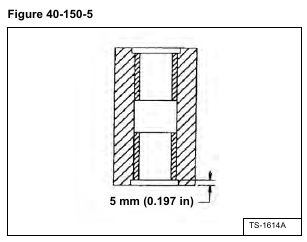 Install the bushings until they are seated 5 mm (0.197 in) in the pin boss [Figure 40-150-5] on both sides of the boom.