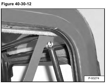 With a second person supporting the window, partially raise the window. Remove the clips (Item 1) [Figure 40-30-12] from the gas strut on both sides of the window.