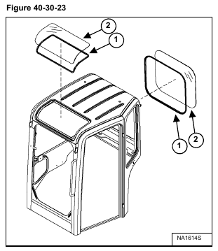 Install the glass and seal assembly (Item 1) [Figure 40-30-26]. Press the glass into the cab to make complete contact with the adhesive. Tape the glass in place.