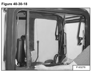 Lift the window up into the top channel and tilt the bottom edge out [Figure 40-30-18]. Remove the window from the cab.