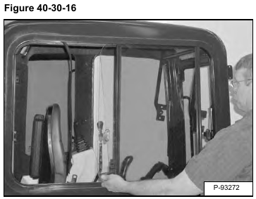 Lift the window up into the top channel and tilt the bottom edge out [Figure 40-30-16]. Remove the window from the cab.