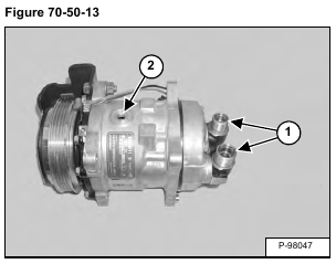 Add new compressor oil through the suction side connector (Item 1) [Figure 70-50-15].