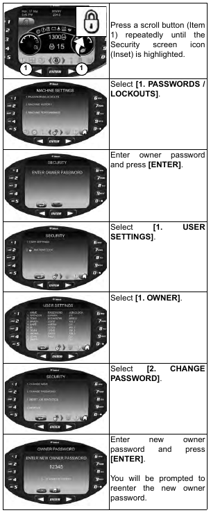 Posted on October 7, 2023 by Jack BobCat E35 – CONTROL PANEL SETUP (S/N A93K18000 & ABOVE AND AC2P15000 & ABOVE) – Password Setup (Deluxe Instrument Panel) – Changing The Owner Password
