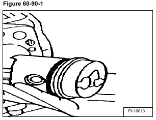 Use a hammer handle and push the piston / connecting rod assembly out of the cylinder bore [Figure 60-90-1].