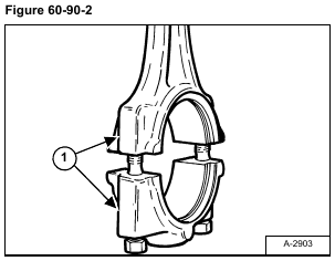 Installation: Make sure the marks on the connecting rod and bearing are aligned when installing the bearing cap (Item 1) [Figure 60-90-2].