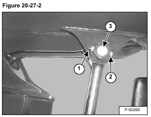 Remove the nuts (Item 1), bolt (Item 2) and pin (Item 3) [Figure 20-27-2] from the rod end of the angle blade cylinder.