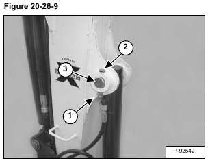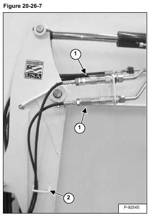 Disconnect the quick couplers (Item 1) and remove the hoses from the top hose guide (Item 2) [Figure 20-26-7].